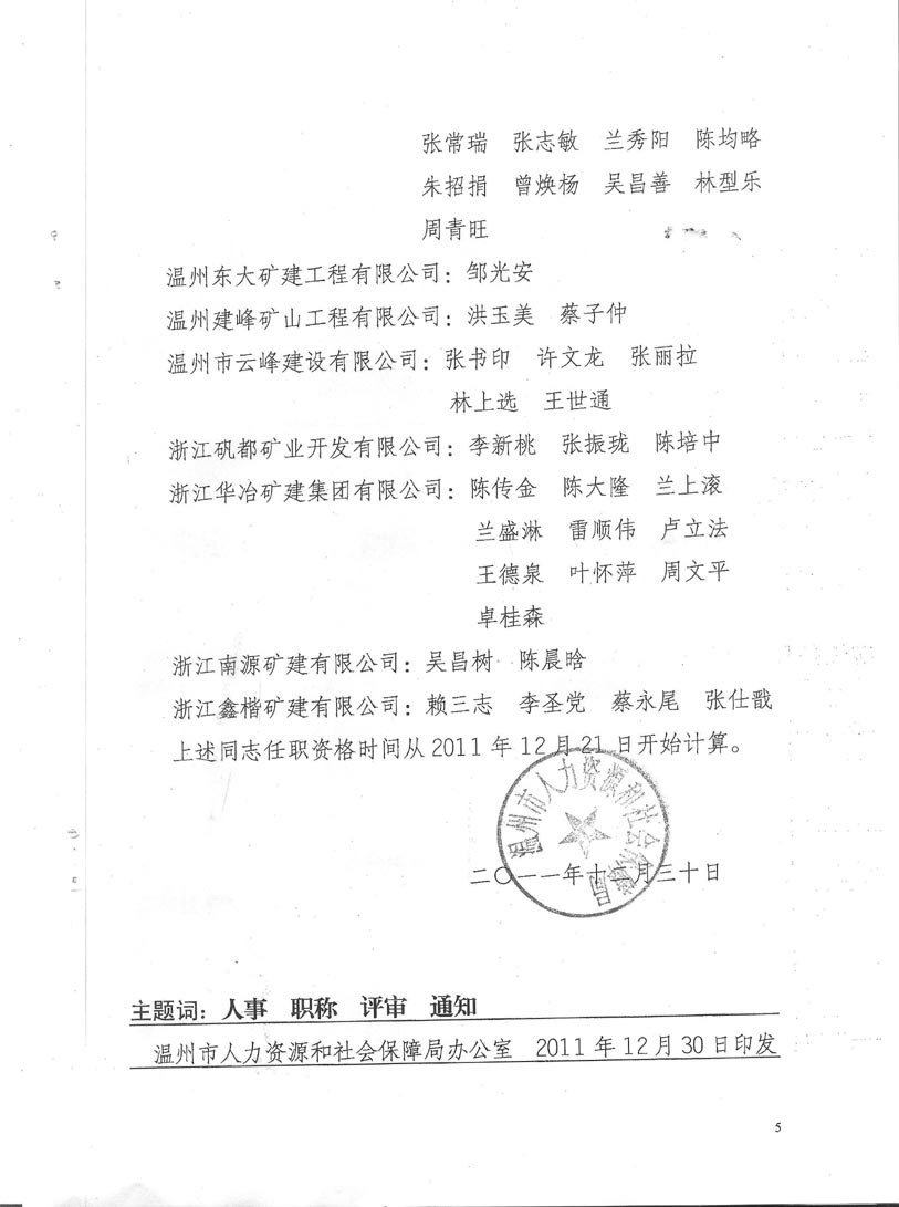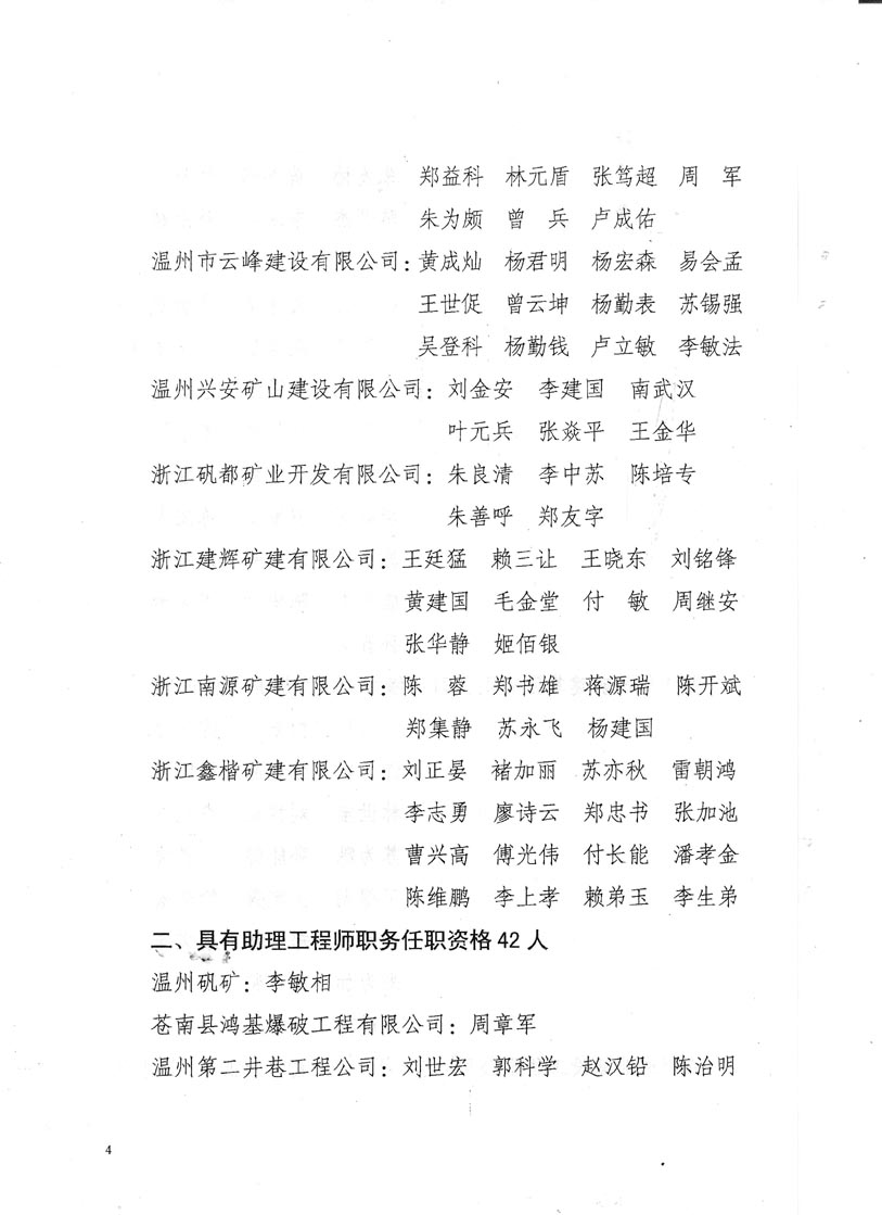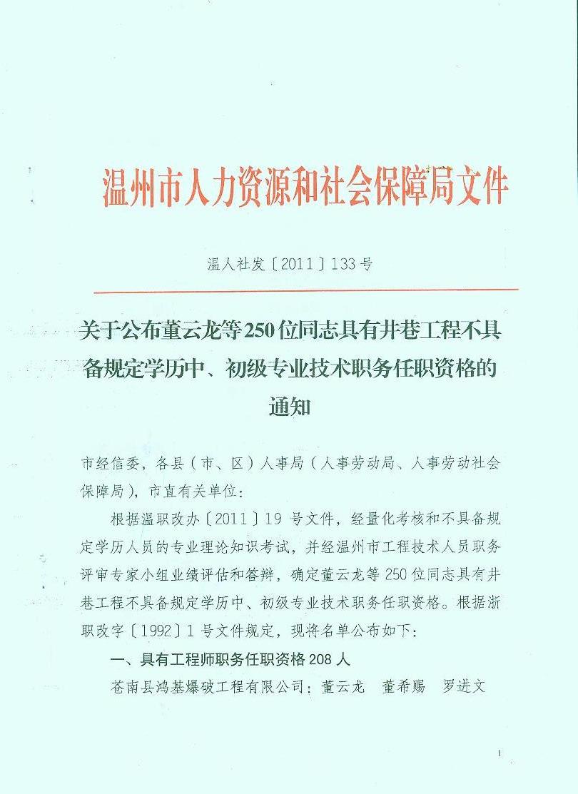 關(guān)于公布董云龍等250位同志具有井巷工程不具備規(guī)定學(xué)歷中、初級專業(yè)技術(shù)職務(wù)任職資格的通知